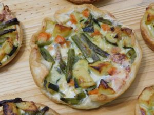 Srotolate la pasta sfoglia, stendetela bene se occorre con l’aiuto del mattarello, con un taglia pasta tondo ricavatene sei dischetti che sistemerete negli stampini.