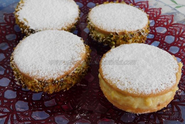 Si ricordava dei dischi di biscotto che all’interno avevano una delicata crema pasticcera che profumava e aveva un gustoso sapore di limone.