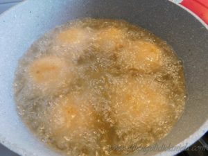Scaldate bene l’olio, quando sarà ben caldo adagiate le arancine, fatele dorare bene e scolatele dall’olio in eccesso ponendole su un foglio di carta assorbente.