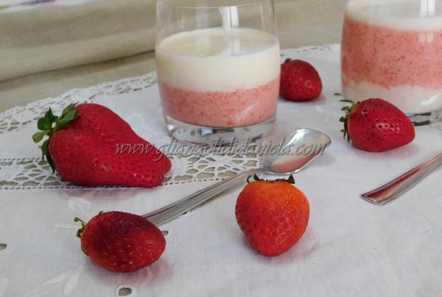 Se preferite potete lasciare da parte un altro po di crema con le fragole, lasciarla a temperatura ambiente e una volta che il secondo strato (quello alla vaniglia) si sarà addensato versarlo sopra andando così a creare tre strati.
