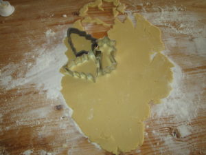 Riprendete l’ impasto, stendetelo sulla vostra tavola o piano di lavoro infarinato e create i biscottini con le vostre formine.