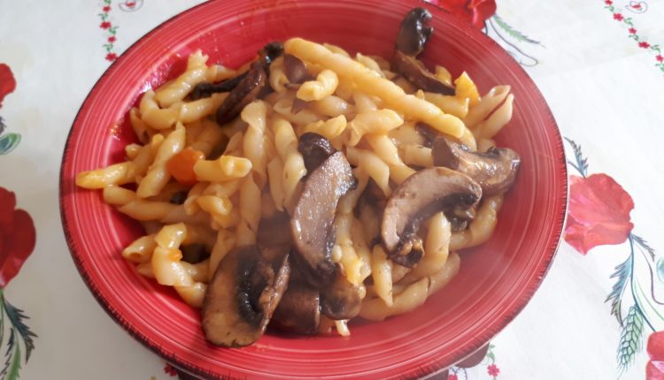 Prendete una padella, quando scolate la pasta fatela saltare con la crema di zucca, abbondante affinché i riccioli della pasta si riempano di crema, e aggiungete sopra i funghi crema dal sapore deciso.