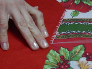 Unite le due parti facendo il punto festone della lunghezza di circa 1 cm/1.5cm, se il pannolenci è rosso vi consiglio di cucire con il filo bianco, se verde con il rosso, comunque sempre con un colore che risalti bene.