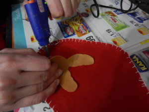 A questo punto largo alla vostra fantasia, a seconda della persona, del bambino potrete applicarvi le iniziali sempre fatte a pannolenci oppure dei motivi in legno a forma di angioletto, o creare dei cuoricini come ho fatto io, una piccola renna personalizzabile.