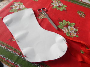 Create su un cartoncino il modello di calza che volete realizzare con le dimensioni che desiderate, potete o disegnarla liberamente o servirvi di un calzino un po grande o cercare su internet nella sezione immagini trovate tantissimi cartamodelli di varie dimensioni.