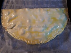 Chiudete con l’aiuto di una forchetta e spennellate sopra l’uovo leggermente sbattuto.