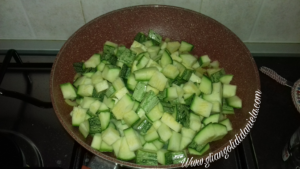 Tagliate una cipolla e fatela imbiondire in un filo d’olio evo, aggiungete le zucchine precedentemente tagliate a cubetti, salate e fate cuocere per circa 8/10 minuti, aggiungete poi il prosciutto cotto a dadini e fate cuocere per altri 5/8 minuti.