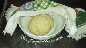Trasferite l’impasto nella spianatoia e formate una palla, lasciatela lievitare coperta con un canovaccio per circa un’ora e mezza in modo da raddoppiare di volume.