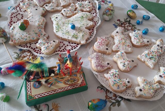 Le classiche sono le colombine, i panieri, coniglietti, il cuore che tradizione voleva la fidanzata regalava al proprio fidanzato e come decorazione avevano due uova sode colorate.