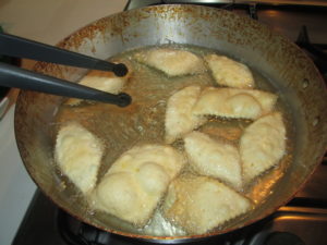 Si tratta di pasta molto semplice che viene tirata con la macchinetta, fatta a striscioline lunghe o corte o a triangolini con i bordi ondulati e messa a friggere in abbondante olio di semi.