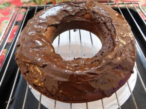 Durante la cottura preparate la glassa di cioccolato, fondete il cioccolato fondente con una noce di burro, quando sarà bel sciolto abbassate la fiamma e continuate a mescolare.