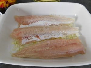 Ungete una pirofila con l’olio evo e create un letto di cipolle su cui andrete ad adagiare i filetti di merluzzo, salate bene e create uno strato abbondante di patate e peperoni, versate a filo l’olio evo e salate.