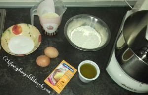 Unite a filo il latte alternato con l’olio evo, incorporate la farina setacciata con il lievito a poco a poco e un pizzico di sale.