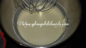 Lavorate per 8 minuti le uova con lo zucchero fino a quando il volume sarà raddoppiato e il composto risulterà giallo chiaro e spumoso.