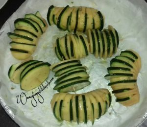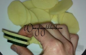 Se qualche patate è piccola e non riuscite ad inciderla bene potete utilizzare degli stuzzica denti, tagliate a strisce le patate e alternate con la zucchina o il prosciutto e infilzatele con lo stuzzica denti, procedete con la spennellatura dell’olio e degli aromi.