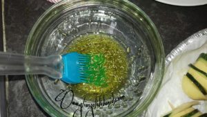 In una ciotola versate l’olio extra vergine d’oliva e aggiungete gli aromi a vostro piacere, come se voleste creare un pinzimonio. Io ho aggiunto gli insaporitori per patate e del rosmarino fresco.