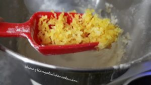 Setacciate insieme il lievito, la farina e il sale. Montate lo zucchero con le uova fino ad ottenere un composto liscio , incorporate a poco a poco la farina, la scorza del limone, il latte a filo e il burro fuso leggermente a fuoco basso.