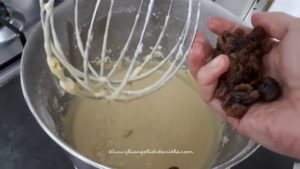 Scolate e strizzate l’uvetta e aggiungetela all’impasto.