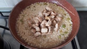 Girate di tanto in tanto aggiungendo mestoli di brodo e continuate la cottura rispettano i tempi indicati nella confezione.