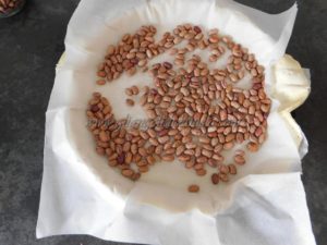 Foderate uno stampo da 26 cm di diametro con la carta da forno, stendete la pasta sfoglia accuratamente bucherellata, coprite con un altro foglio di carta da forno e posizionate sopra dei legumi secchi (ho usato dei fagioli).