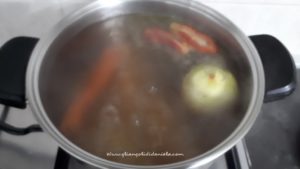 Preparate il brodo vegetale ponendo 1,5 litri di acqua in una pentola, aggiungete un pugno di sale grosso, una carota, una cipolla, pomodori secchi, prezzemolo, e fatelo raffinare per circa 45 minuti.