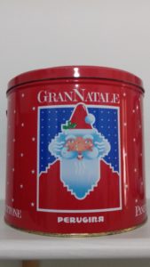 Gran Natale invece è del 1989, e all’interno conteneva un pandoro Perugina, sembra proprio una scatola d’altri tempi, il tema centrale è il Babbo Natale sotto la neve, il rosso ne fa da padrone con delle stelline in tutta la scatola, ben in evidenza abbiamo il marchio Perugina e molto probabilmente Gran Natale indicava la campagna dolciaria di prodotti da forno del Natale.