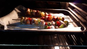 Infornate e fate cuocere per una ventina di minuti circa. Di tanto in tanto controllate la cottura ed eventualmente girate gli spiedini.