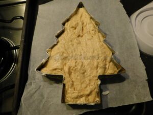 Imburrate e infarinate uno stampo ad albero, a stella o se preferite semplicemente tondo, versate il composto, livellate e infornate a forno preriscaldato a 200° per 35/40 minuti.