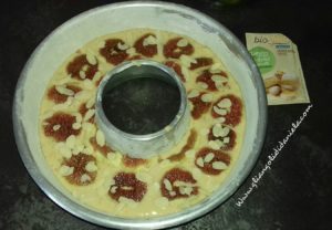 Versate l’impasto nella teglia e livellatelo. Decorate con i fichi secondo la vostra fantasia e versate a pioggia delle mandorle pelate.