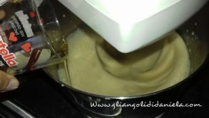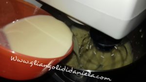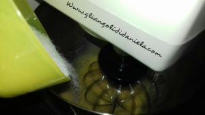 Nel frattempo lavorate uova e zucchero per alcuni minuti,aggiungete il latte a filo, l’olio di semi, la farina setacciata, il lievito biologico S.Martino e un pizzico di sale, lavorate bene fino a che il composto non risulti omogeneo.