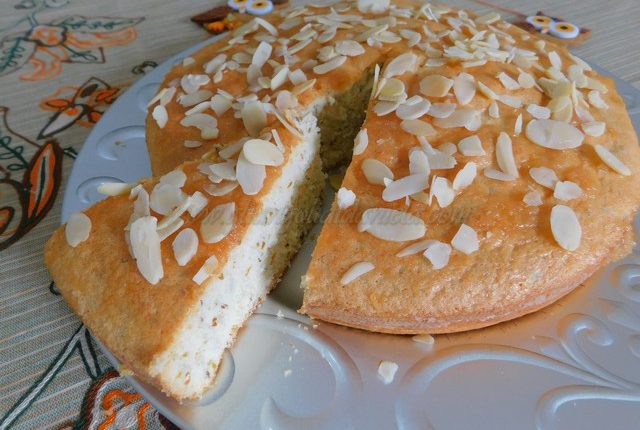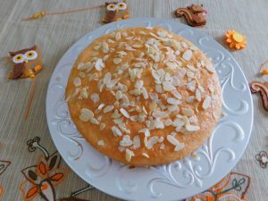Sfornate, fate raffreddare, capovolgete e decorate con la marmellata di albicocche o susine e cospargete di mandorle affettate.