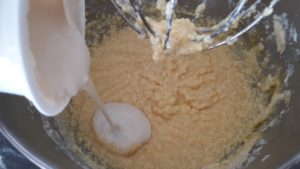 Incorporate le uova ad una ad una montando lentamente, aggiungete il succo di limone, lo yogurt e per ultima la farina setacciata con il lievito per dolci.