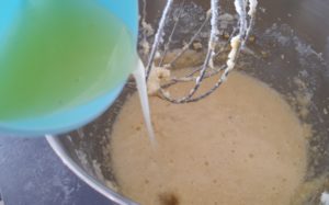 Incorporate le uova ad una ad una montando lentamente, aggiungete il succo di limone, lo yogurt e per ultima la farina setacciata con il lievito per dolci.