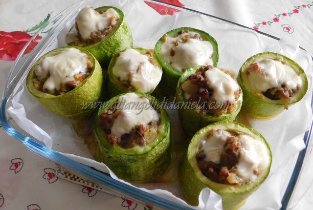Disponete le zucchine in maniera ordinata nella pirofila, infornate e fate cuocere per 20 minuti a 180° funzione ventilata.