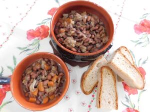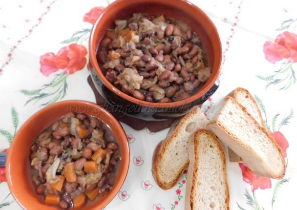 Penso ad un piatto caldo, qualcosa che ci riscaldi ma allo stesso tempo sia nutriente, la sera prima avevo messo in ammollo due belle porzioni abbondanti di fagioli borlotti (non possono mai mancare insieme ai ceci nella dispensa di casa mia), volevo preparare un piatto un pò diverso così frugo un pò in frigorifero fra le mie verdure fresche e decido di accostare i borlotti ad una bella verza fresca dell’orto, raccolta sabato pomeriggio.